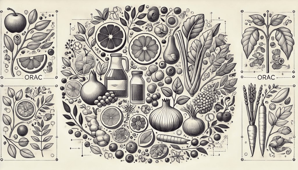 ORAC値が直接の健康効果を示さないとしても、抗酸化物質を多く含む食品をバランスよく摂取することは、酸化ストレスを軽減するための一つの手段です。抗酸化物質は、体内でのフリーラジカルを中和し、細胞の酸化ダメージを防ぐ役割を果たします。以下は代表的な抗酸化物質とそれを含む食品です。
