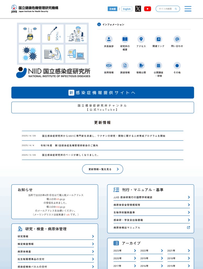 運営主体:国立研究開発法人 国立感染症研究所(厚生労働省管轄)