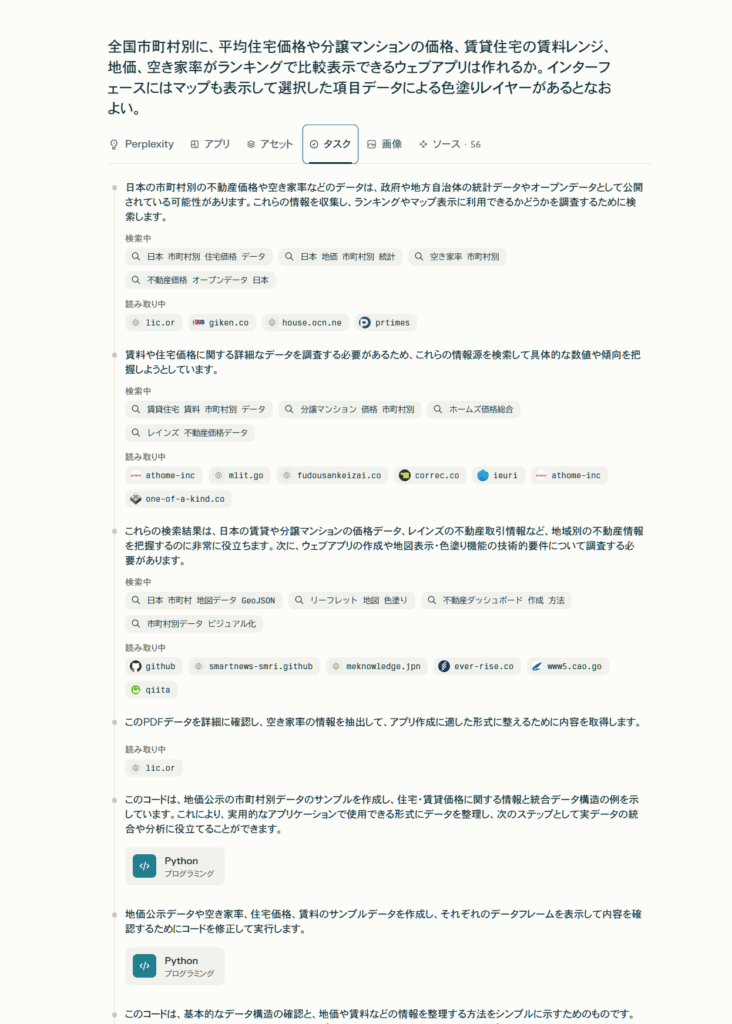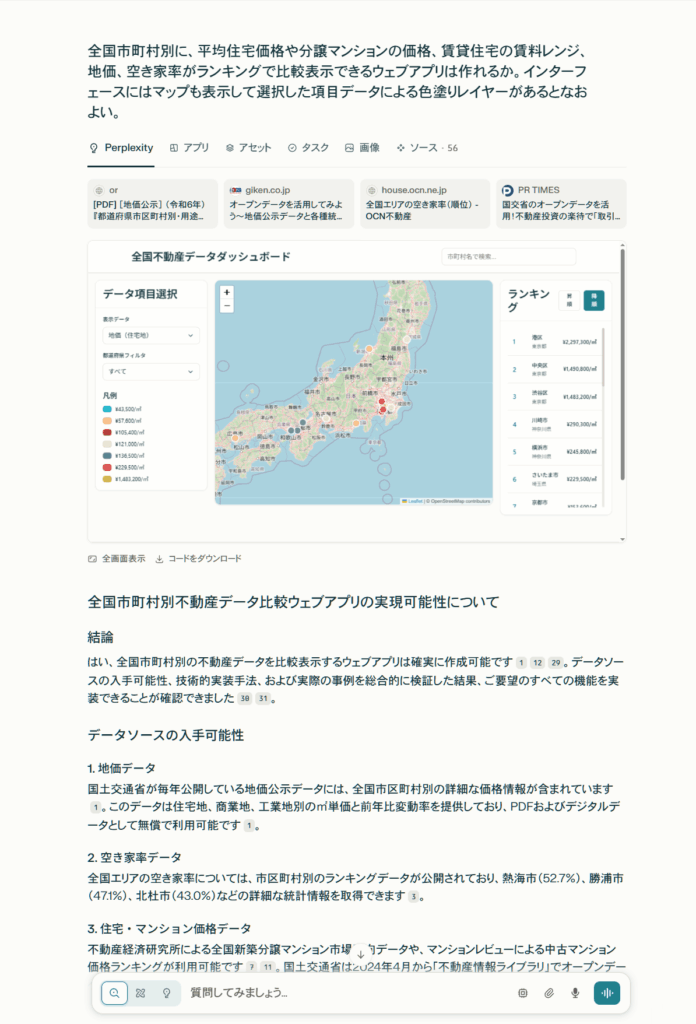 Perplexity Lab「全国不動産データダッシュボード」をわずか10分で作成