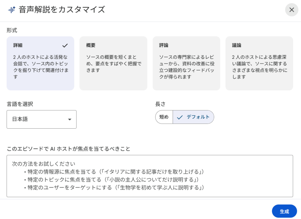 ✔ 音声解説(Audio Overview)