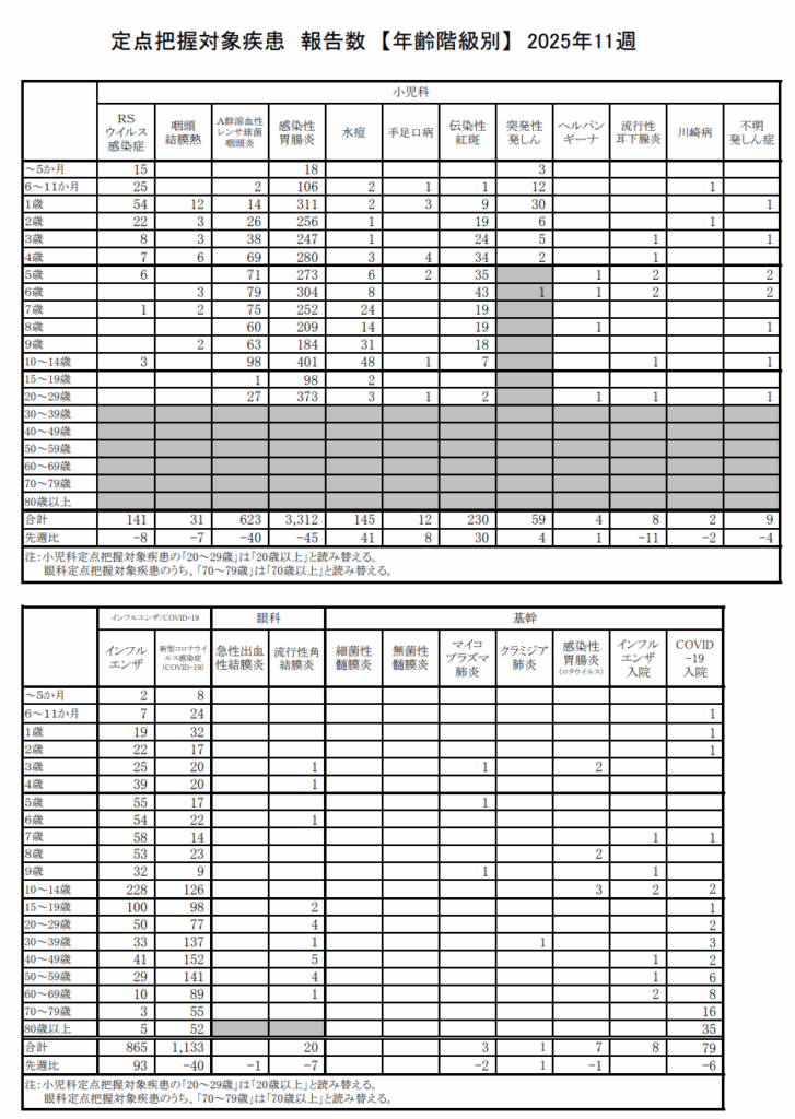 - 年齢層別の感染状況(例:0〜4歳、5〜9歳など)