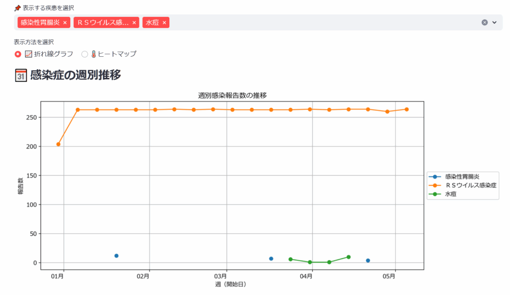 特に、小児感染症に関心を持つ保護者や教育現場にとって、「いま、何が流行っているのか」「どの疾患が増えているのか」を一目で把握できるような視覚的な手段が求められていると感じました。そうした課題を、誰でも扱えるWebアプリとして解決したいと考えたのです。